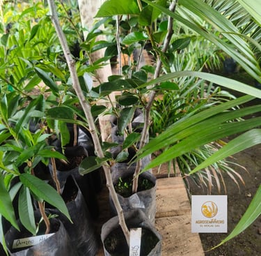 Árbol vigoroso de fruta exótica. Ideal para huertos caseros o macetas, brindando sabor único y abundante cosecha.